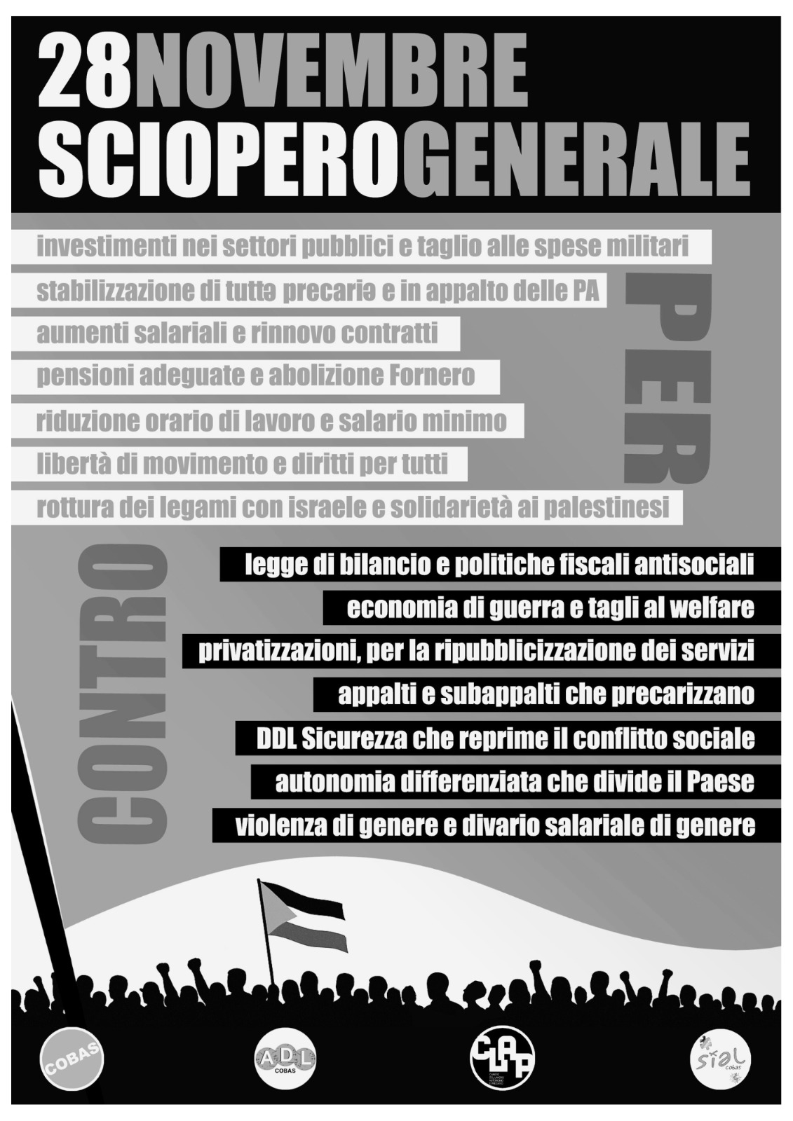 SI allega la circolare in oggetto Documenti timbro_Circ. n. 69 del 12.11.2025 - Comunicazione ai lavoratori - Azione di sciopero 28 NOVEMBRE.docx.pdf timbro_Sciopero 28 Novembre 2025 testo PEC-signed.pdf IMG-20251116-WA0000 (002).jpg Locandina 28 nov 25.pdf Vol sciopero 28 Unicobas.pdf