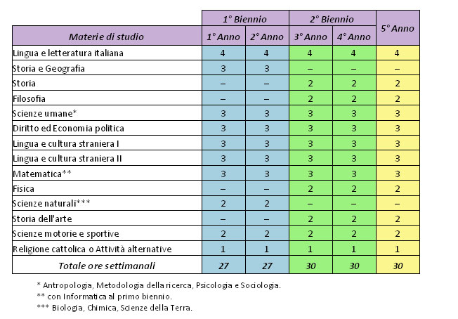 Piano degli Studi delle Scienze Umane con opzione Economico-Sociale